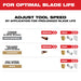- TITANIUM CHARGED™ bi-metal for up to 15X Longer Life vs High Carbon Steel Blades.