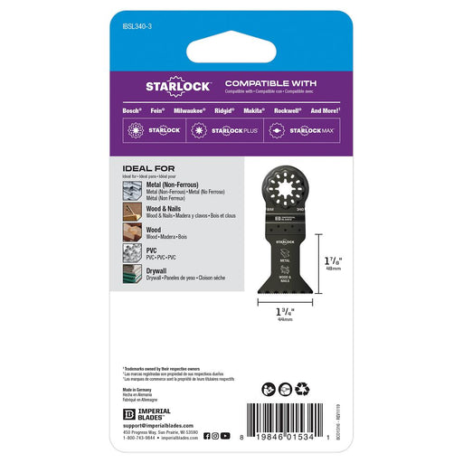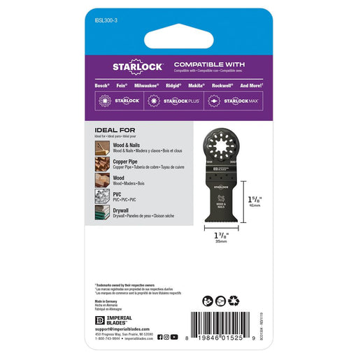 ImperialImperial Blades Starlock™ 1-3/8" Japanese Tooth Hardwood Blade 3 Pack is composed of high carbon steel (HCS) for medium-duty wood applications. The...