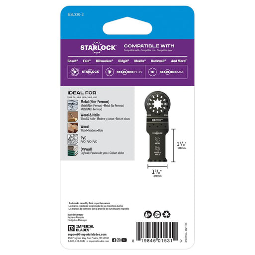 ImperialImperial Blades Starlock™ Bi-Metal 1-1/8" Metal Blade 3 Pack is composed of durable bi-metal (BiM) for up to 5X longer life than standard Imperial ...