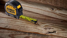 With the ability to survive drops up to 100 ft., this Tough Series 35 ft. Tape Measure redefines the standard of tough. Tackle lengthy measurements without help with 17 ft. of max reach. Versatile Tough Series tape measures allow you to conveniently measure from any angle and are the first in the DEWALT family to have double-sided print. Quickly measure metal materials with the removable hook magnet while patented hook connection technology gives you full control on the jobsite. The hook is equipped with 6 in. of Rip-Shield blade coating for defense against wear-and-tear and the durable tapeline finish protects the entire length of the blade for enhanced endurance.