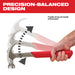- / Curved Claw Geometry offers superior leverage for nail pulling and prying applications.