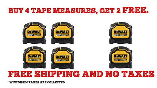 BUY 4 GET 2 FREE DEWALT ToughSeries Tape Measure 25' Free + Free Shipping!