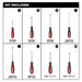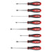 Featuring hardened tips & forged shanks the Milwaukee® 8 Piece Screwdriver Set provides professional grade solutions and durability to the user. Bit types are marked on the cap of each tool for quick identification and increased efficiency.The comfortable tri-lobe handle allows users to comfortably apply more leverage.