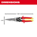 Our Long Cut Aviation Snips are built for long life and clean cuts. Forged blades with laser-hardened edges are durable and deliver long life. Sharp, serrated blades provide smooth and clean cuts. Our handles are designed to deliver easy, low-effort cutting. BOLT LOCK™ ensures the blades won't loosen and chrome plating provides rust protection. The color-coded handles allow for easy identification on the job. The metal lock secures the tool for storage and is easily operated with one hand. The 3" long cut blade is ideal for long straight cuts.