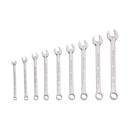 Klein ToolsThe Klein Tools 9-Piece Combination Wrench Set contains 9 standard-size wrenches ranging from 1/4 to 3/4-Inch. These high-quality hand tools are dr...