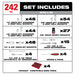 The MILWAUKEE® 242pc. 1/4”, 3/8”, & 1/2” Drive Metric & SAE Ratchet & Socket Set with PACKOUT™ 4-Drawer Tool Box features 6-point sockets with FOUR FLAT™ Sides that deter rolling and are wrench compatible. These sockets have optimized geometry to reduce bolt rounding and stripping. The 90-tooth ratchets provide 4° of arc swing and a slim profile for work in tighter spaces. The set also includes SHOCKWAVE Impact Duty™ sockets with the boldest, longest-lasting markings and extreme impact durability in high torque applications. The stamped and ink-filled size marking enables you to select the right socket every time throughout the life of the socket. The PACKOUT™ 4-Drawer Toolbox is part of the most versatile and durable modular storage system and comes equipped with a locking security bar that can be secured with a padlock. The durable reinforced trays feature high-contrast EVA foam and easy-to-read size labeling for quick tool identification. All mechanics hand tools and impact sockets are backed by the Milwaukee® Lifetime Guarantee. The Milwaukee® Limited Lifetime Warranty covers the PACKOUT™ toolbox.