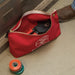 - Heavy-duty brass zipper keeps canvas bag securely closed.