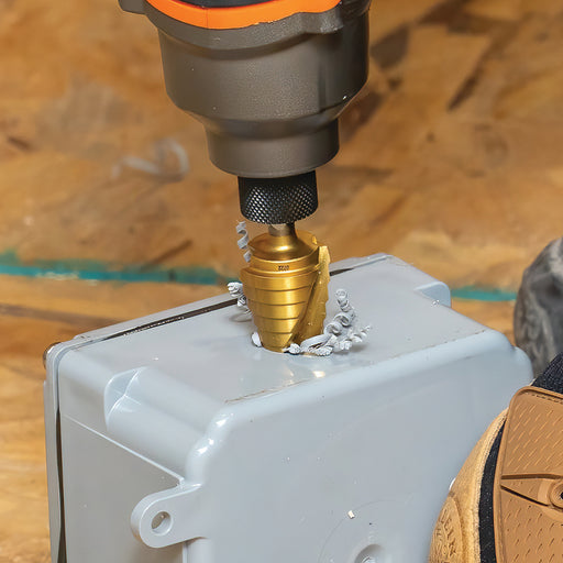 Klein ToolsDual Spiral Flutes on VACO Step Drill Bits help pull the step bit through material for faster cutting. The Titanium Nitride coating extends the lif...