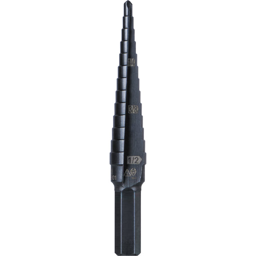 View full detailsKLEIN TOOLS 13-Step Drill Bit, 3/8-Inch Hex, Double Straight Flute, 1/8-Inch to 1/2-Inch