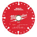 Our Multi-Material Diamond Blades are the most versatile blades in our product range. The vacuum brazed diamond grit delivers up to 100X longer life in metal vs. an abrasive wheel. The vented segments keep the blade cool and ensure consistent cuts throughout the life of the diamond blade. The solid steel core maintains diameter and cut depth throughout the life of the blade. This diamond blade has the versatility to cut metal, wood, masonry, plastic, laminate, fiber cement, ductile, and tile. For dry use only.