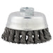 Milwaukee Hyperwire™ wire brush products offer faster material removal and greater life yet maintain a finer finish. Milwaukee offers the finest quality knot wire cup brushes to give you long service on the toughest cleaning jobs. These cup brushes are ideally suited for cleaning castings, structural steel and sheet metal. Milwaukee offers a full range of knotted and crimped cup brushes as well as a full line of stringer bead and full cable twist wire wheels. This knot wire cup brush is designed to be used on 4-1/2 in. or 5 in. Milwaukee and competitive grinders with 5/8 - 11 threaded spindles. Made of carbon steel.