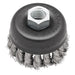 Milwaukee offers the finest quality knot wire cup brushes to give you long service on the toughest cleaning jobs. These cup brushes are ideally suited for cleaning castings, structural steel and sheet metal. Milwaukee offers a full range of knotted and crimped cup brushes as well as a full line of stringer bead and full cable twist wire wheels. This knot wire cup brush is designed to be used on 4-1/2 in. or 5 in. Milwaukee and competitive grinders with 5/8 - 11 threaded spindles. Made of carbon steel.