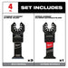 The MILWAUKEE® Universal Fit OPEN-LOK™ 3-Pack TITANIUM CHARGED™ Bi-Metal Multi-Material Oscillating Multi-Tool Blades +1 NITRUS CARBIDE™ Extreme Materials blade provides you with an assortment of top-performing blades in the most common multi-material and extreme material applications. The included NITRUS CARBIDE™ Blade delivers the fastest cutting and longest life and provides up to 2X more cuts vs Carbide Teeth. The NITRUS CARBIDE™ Extreme Materials blade is for use in screw-embedded wood, nail-embedded wood, plaster, cement board, drywall, PVC, and more. The TITANIUM CHARGED™ Bi-Metal blades have an optimized titanium blend for maximum wear-resistance and up to 15x longer life versus high carbon steel (HCS) blades. Both blades feature a redesigned Universal Fit OPEN-LOK™ anchor for better strength & control and allow for quick blade changes across 100+ multi-tools. Not compatible with Starlock tools. MILWAUKEE® oscillating multi-tool blades are designed and made in the USA with global materials.