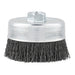 Milwaukee Hyperwire™ wire brush products offer faster material removal and greater life yet maintain a finer fins. For lighter duty surface cleaning a crimped style cup brush is appropriate. Crimped wire is less rigid than knotted and can get into crevices more easily. Milwaukee offers a full range of crimp and knotted wire cup brushes. This crimp wire cup brush is designed to be used on 7 in. Milwaukee and competitive grinders with 5/8 - 11 threaded spindles. Made from carbon steel wire.
