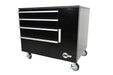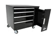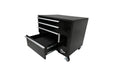 - Heavy-duty welded steel construction. 4 locking, swivel casters for easy mobility. Smooth, slow-close drawer slides. 32" W X 25.25" D X 29" H.