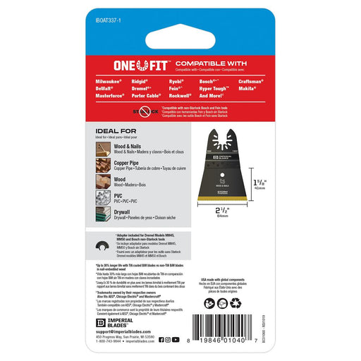 ImperialImperial Blades One Fitβ’ 1-1/4" Bi-Metal Wood & Nails Blade is composed of durable bi-metal (BiM) to stand up to nail-laden materials. Recommen...