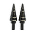 Nuestra línea de brocas escalonadas supera con creces a la competencia. Con nuestro diseño de un solo filo, tendrá más control y un acabado más limpio. Fabricadas en acero de alta velocidad, estas nuevas brocas escalonadas son duraderas y están diseñadas para perforar la mayoría de los metales. El acabado de óxido negro evita la corrosión y tiene una gran capacidad para trabajar con lubricantes de perforación. La nueva punta de arranque rápido evita que la broca se desplace y permite una penetración más rápida. Con marcas grabadas con láser, siempre sabrá el tamaño de los orificios... ¡sin tener que adivinar! Por último, el vástago de 3 caras en la broca más grande evita que se resbale, mientras que el vástago hexagonal de 1/4 de pulgada en las dos brocas más pequeñas permite un cambio rápido de broca en destornilladores de impacto y un agarre seguro en los portabrocas.
