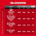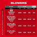 The MILWAUKEE® MX FUEL™ Backpack Blower delivers higher blowing force than up to 63cc gas, providing users the power to clear heavier debris and more material faster. The POWERSTATE™ Brushless Motor delivers 800 CFM, 190 MPH, and 30 Newtons of blowing force in high mode while maintaining a sound level of 64dBA. This backpack blower features 3 power modes, allowing users to optimize performance and run time-based on application needs. Power modes can be selected by the operator on the tool or managed and locked remotely through the ONE-KEY™ app from a paired device, delivering the best performance control and increasing the work done. In addition to managing performance, the user can also utilize the ONE-KEY™ app to track usage and location, manage their blower inventory, and lock it out for security and protection of the user’s investment when needed. THE MX FUEL™ Backpack Blower delivers 20 to 45 minutes of constant power per charge when paired with an MX FUEL™ REDLITHIUM™ FORGE™ HD12.0 Battery (not included). The blower also offers a fully adjustable harness, telescoping nozzle, and adjustable handle position to adapt to the fit and comfort needs of different operators. The MX FUEL™ Backpack Blower is compatible with all MX FUEL™ REDLITHIUM™ batteries and is optimized for use with MX FUEL™ REDLITHIUM™ FORGE™ HD12.0 Battery Packs.