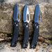 - La navaja de bolsillo Tanto Blade está hecha de acero para herramientas D2 para un borde duradero y duradero.
