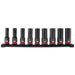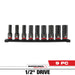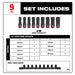 MILWAUKEE 9 PIEZAS. Juego de dados de 6 puntas, profundos, métricos, con impulsión de 1/2" SHOCKWAVE IMPACT DUTY™