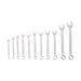 El juego de llaves combinadas métricas de 11 piezas Klein Tools contiene una variedad de llaves estándar y para usos especiales. Están hechos de una aleación de acero forjado y han sido endurecidos y revenidos para mayor resistencia.