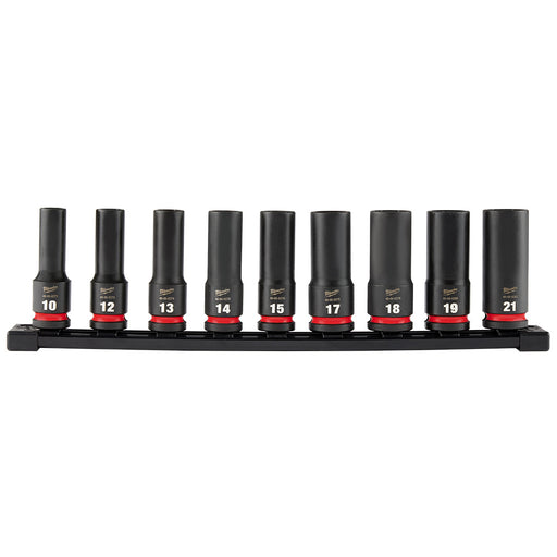 Ver todos los detallesMILWAUKEE 9 PIEZAS. Juego de dados de 6 puntas, profundos, métricos, con impulsión de 1/2" SHOCKWAVE IMPACT DUTY™