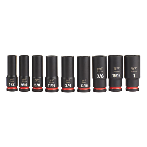 Milwaukee ToolEl juego de dados de 6 puntas profundas SAE con accionamiento de 1/2 pulg. SHOCKWAVE Impact Duty™ de 9 piezas MILWAUKEE® presenta las marcas más au...