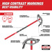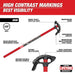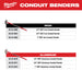 Nuestras dobladoras de conductos EMT cuentan con marcas de alto contraste para una mejor visibilidad, lo que le permite realizar curvas con facilidad y precisión. Un gancho reforzado le proporciona mayor durabilidad, mientras que un mango seguro de doble perno no se afloja después de un uso repetido. La zapata dobladora de tubos para conductos presenta la mayor cantidad de referencias de flexión, así como una tabla de referencia resistente al desgaste para un uso más fácil. Los multiplicadores de compensación se incluyen en la zapata, mientras que las muescas de curvatura central de 30°, 45° y 60° y un indicador de curvatura de 90° en la parte posterior le permiten doblar conductos con facilidad y precisión.