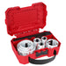 The MILWAUKEE® 13-Piece HOLE DOZER™ Bi-Metal Hole Saw Kit features a new 3.5 TPI tooth design that offers the longest life in metal applications. These HOLE DOZER™ Bi-Metal Hole Saws feature the industry's only Lifetime Tooth Break Warranty and take on all general purpose applications, making them the most durable hole saws. Our ALL-ACCESS SLOTS solve the frustration of plug removal for more productivity with less downtime between holes. The new slot design also offers increased pilot visibility for accurate placement and faster chip ejection keeping the cut cool. HOLE DOZER™ Thermoset Coating allows for faster cutting and is optimized for cordless tools, delivering 25% more holes per charge. Milwaukee HOLE DOZER™ Bi-Metal hole saws are proudly made in the USA. This hole saw kit also includes a case, which offers enhanced customization capability thanks to the interchangeable pegs. Store arbors, pilot bits, and more in the removable accessory box or remove it to create more space for hole saws. Each Milwaukee Hole Saw Case features a reinforced grid design on the top and bottom, plus heavy-duty latches, securely storing the hole saws within this durable, hard case design. The Milwaukee Small Hole Saw Case fits conveniently in Packout™ Organizers making transportation and storage a breeze.