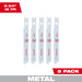 Milwaukee® U-Shank Bi-Metal Jig Saw blades are designed and manufactured for the professional user. Bi-metal blades last longer than high speed steel or carbon blades. Detail to the material used, tooth shape and sharpness make these blades cut clean, fast, and have a longer life. These blades fit U-Shank style Jig Saws. Includes 5 individual blades.