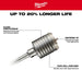 Milwaukee’s one piece Carbide tipped core bits are ideal for drilling large holes where the depth is relatively shallow. The core bit cuts a Kerf only. The inside core must be removed by the operator before deeper drilling can be accomplished. Use of centering bit 48-20-5495 is recommended (not included). Use drift key 48-20-5497 to remove centering bit from the one piece core bit. The one piece core bits are available in SDS Max or spline shanks. They come in a variety of diameters ranging from 1-1/2 in. to 6 in. with overall lengths of 11-3/8 in. or 22 in. and a drilling depth of 3 in.. the asymmetric tooth pitch with alternating tooth geometries creates faster material pulverization. The one piece design maximizes energy transfer and the thick wall core body is durable even in large hammers. The fluted core exterior minimizes friction loss and removes debris faster.