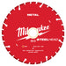 The MILWAUKEE® 5" STEELHEAD™ Metal Cutting Diamond Blades are designed to the highest standards, using only quality diamonds. Available in sizes 4-1/2" - 14", these metal cutting diamond blades are uniquely engineered to cut metal and stainless materials, delivering up to 75X the life vs. Milwaukee standard bonded abrasives. The solid steel core maintains diameter and minimizes debris. Capable of 375+ cuts in rebar, 250+ cuts in strut, and 500+ steel studs, this blade maximizes your productivity to do more with one blade. The keyhole gullets offer rapid debris removal while cutting. Cut through steel, stainless, copper, cast iron, and schedule 40 pipe. For dry use only.