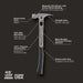 • Extractor de clavos lateral de 180⁰: tira hasta clavos 16D con facilidad.