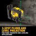 El nivel láser giratorio para interiores y exteriores tiene una precisión de 1/4 de pulgada a 100 pies. Está construido para soportar condiciones difíciles en el lugar de trabajo con una jaula giratoria duradera que ayuda a proteger el cabezal en caso de caída. Una configuración innovadora de múltiples puntales delgados mantiene la resistencia de la unidad y elimina los puntos ciegos. La unidad es autonivelante en modo horizontal y, en modo vertical, los botones de flecha utilizados para la nivelación manual son más intuitivos que las perillas tradicionales. Nítido y brillante, el haz se puede ver hasta 100 pies en interiores y se puede reconocer hasta un diámetro de 1500 pies en exteriores con el detector incluido. El láser también ofrece una carcasa resistente a la intemperie para un rendimiento duradero y preciso.