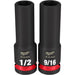 MILWAUKEE Juego de llaves de vaso de 6 puntos profundos SAE con accionamiento de 1/2" SHOCKWAVE Impact Duty de 12 piezas