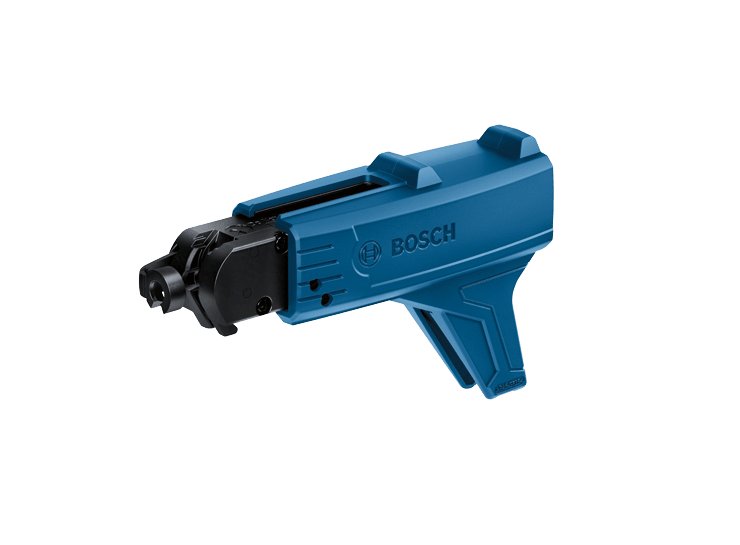 This auto-feed attachment is designed for the Bosch GTB18V-45 drywall screwgun. The GMA22 enables precise driving of rows of screws at top speed, while allowing comfortable continuous work, for added efficiency. It allows fast repeatable fastening without having to load one screw at a time by hand. It has an ergonomic design and is extremely light in weight. The drywall screwdriver attachment has an open design to help prevent debris from getting trapped in the mechanism, allowing for a longer product life. The GMA22 uses widely distributed strips of screws. These screws have lengths of between 1 In. (25 mm) and 2-1/8 In. (55 mm), screw shank diameters up to 0.2 In. (5 mm), and screw head diameters up to 3/8 In. (9.5 mm). the Bosch GTB18V-45 is an ergonomic screwgun, getting drywall jobs done comfortably and fast. It has a well-balanced grip, allowing the thumb and the index finger to control the operation, and Xtend Drive to activate the motor only when the bit senses pressure.