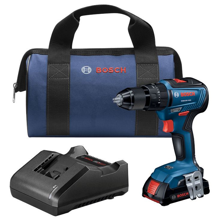 The Bosch GSB18V-490B12 Kit features a 1/2 In. Hammer Drill/Driver that is made to tackle demanding materials and applications (such as metal or masonry) anywhere on a worksite. The Bosch GSB18V-490 is a powerful 18V hammer drill/driver, which features Rapid Mode Selection, to switch among hammer mode, drilling mode and driving mode, engaging a clutch with 20 precision torque settings, for reduced fastener damage. Its efficient EC Brushless motor delivers outstanding runtime and longer motor life. It generates 490 In.-Lbs. of torque and a no-load bpm of 0-22,000. This drill is variable-speed and has a two-speed gearbox, designed for high-torque driving (0-460 rpm) or high-speed drilling (0-1,800 rpm). With an upgraded, all-metal chuck, the drill has great bit hold and torque transfer. The GSB18V-490 features Bosch's Electronic Motor Protection, an LED for illumination and a belt clip. It is an easy tool to handle, with an ergonomic grip zone. The kit comes with one 18V 2 Ah Standard Power Battery and an 18V charger.