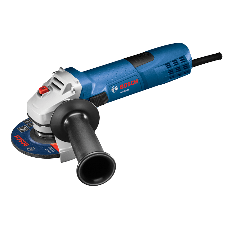 The Bosch GWS8-45 4-1/2 In. Angle Grinder is a light, ergonomic grinder, with a slender grip circumference that allows users to work comfortably for extended periods. This 4.2 Lbs. tool delivers plenty of power, with a 7.5 Amp motor that produces 11,000 no-load RPM. It has directed air flow that diverts dust away from vital components. Bosch's Service Minder brush system shuts off the tool when preventative maintenance is required, which helps to eliminate guesswork. This grinder has a two-position side handle. It has a burst-protection quick adjustable guard designed for user protection, as well as a large spindle lock for easy disc changes.