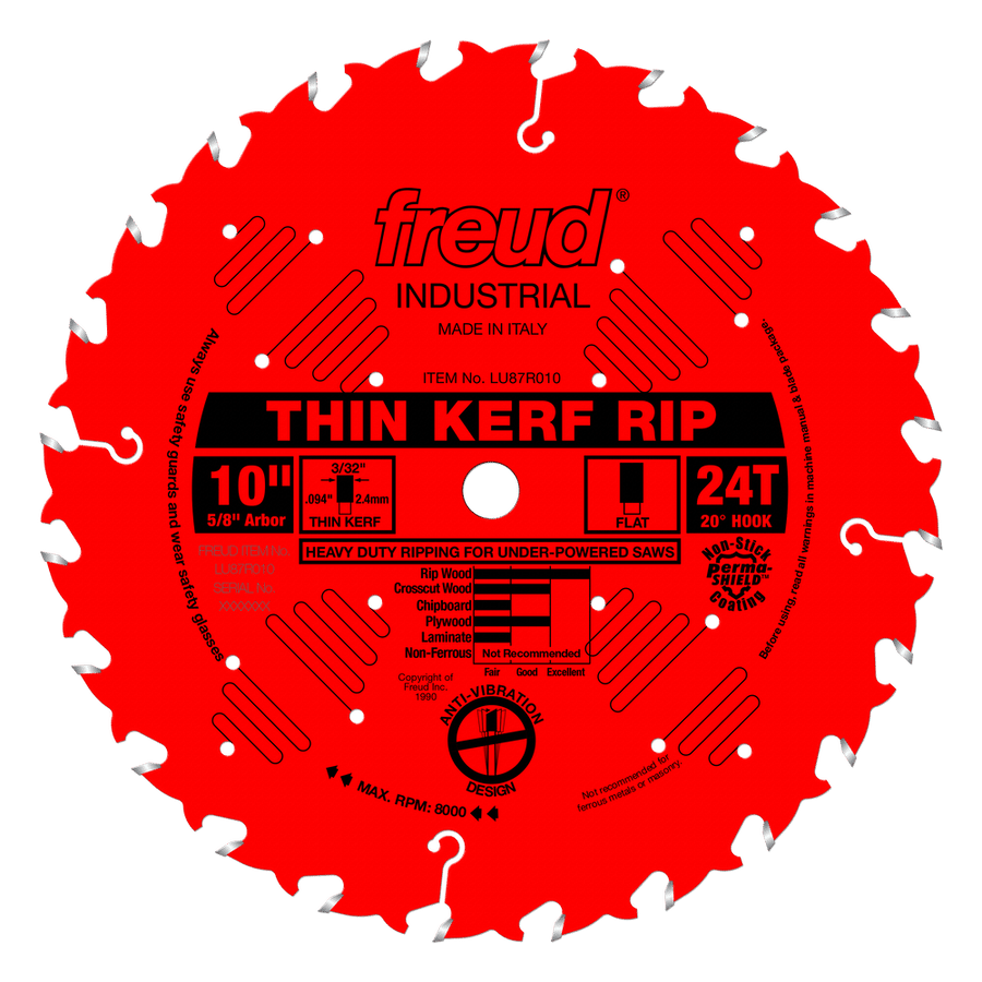 - Thin Kerf allows for faster feed rate and reduced waste.