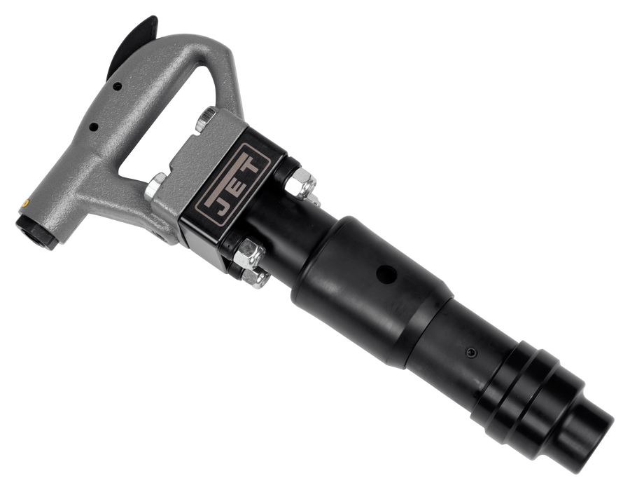 JET® Chipping Hammers are available in two heavy-duty designs with multiple capabilities. The Four Bolt D handle model is designed for extra strength and provides better grip. The Saw Tooth handle model is engineered to dissipate the impact energy more efficiently. Each type has the option of round or hex shaped bushing shanks. Each model can accommodate standard oval collared chisels and retainers, making these heavy-duty Chipping Hammers a staple on any construction site.