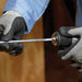 The Klein Flex Bit Auger is used to drill holes through wood within a wall. The screw point tip pulls the bit through wood. A hole in the tip allows for use with wire or cable pulling grips.