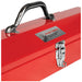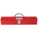 • Piano hinged metal box includes latch with padlock eye and handle.