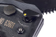 - One-handed use of the ratcheting cutter mechanism allows the other hand to position cable to ensure proper cut.