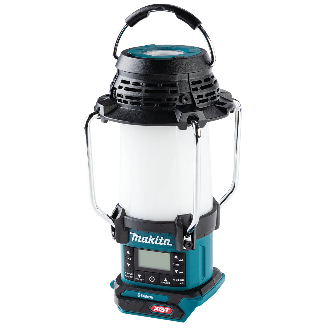 The 40V max XGT® Lantern with Radio (GMR04) offers bright illumination with premium sound quality. The circular design of the lighting area provides 360° illumination, allowing the user to see in all directions by moving the light itself.