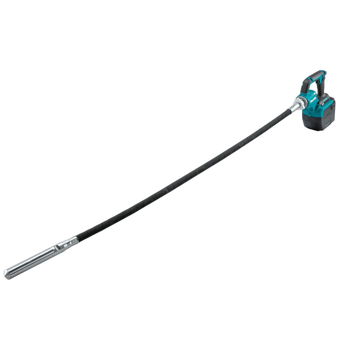 The GVR01Z weighs only 10.6 lbs. with a 4.0Ah battery installed, (battery sold separately) for increased user comfort. The Makita-built motor delivers 15,500 VPM and up to 45 minutes of run time in Normal mode, with up to 60 minutes in Power mode using a fully charged 40V XGT® 4.0Ah battery (battery sold separately). The 5-1/2' shaft length with 1-1/4" vibrator diameter provides more effective leveling and removal of air bubbles in concrete.