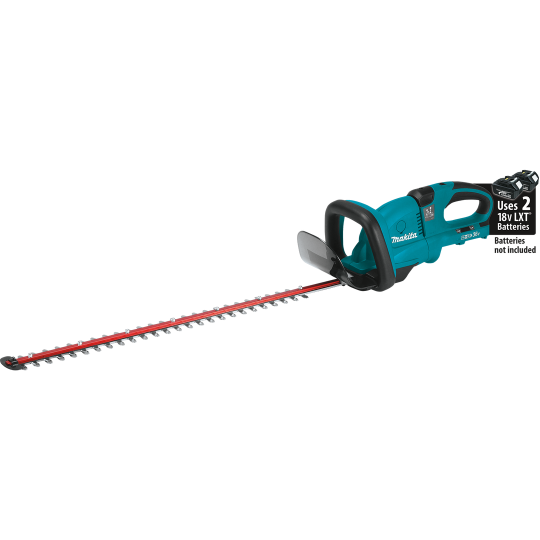 The Makita 18V X2 LXT® Hedge Trimmer (model XHU04Z, tool only) is powered by two 18V LXT® batteries (36V), so you get 36V power and run time for gas-powered demands, without leaving the 18V LXT® platform. Batteries and charger are sold separately.