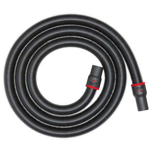 Our 2-1/2” x 16' Flexible Hose delivers unmatched durability and flexibility to survive the jobsite. Its two-part design allows for durable and crush-resistant construction to prevent tears that lead to downtime on the jobsite. The anti-static hose material helps prevent static buildup when cleaning fine particles. The high-performance swivel mechanism and hose material create more flexibility and ease of use during cleaning, preventing the hose from getting bound up or kinked while moving around. The dedicated custom rubber gasket improves airflow and performance when in use. The MILWAUKEE® flexible vacuum hose has an extended length compared to the included stock hose (49-90-2006) and has a red color ring for you to quickly identify its 2-1/2” diameter.