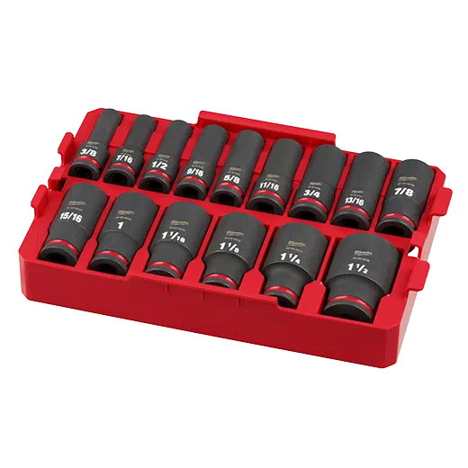 The MILWAUKEE® SHOCKWAVE Impact Duty™ Socket Set features the boldest, longest lasting markings and extreme impact durability in high torque applications. The stamped and ink filled size marking enables you to select the right socket every time throughout the life of the socket. Engineered with high strength forged steel for optimized performance in heavy duty applications. Milwaukee socket sets feature removable trays that are compatible with MILWAUKEE® PACKOUT™ Organizers and fit in tool chest drawers. The non-slip hex geometry prevents fastener rounding. The Milwaukee dual hole design and ring groove allows for easy socket attachment and removal. All Milwaukee SHOCKWAVE Impact Duty ™ Sockets and Extensions are backed by Milwaukee's Lifetime Guarantee and meet ASME industry standards.